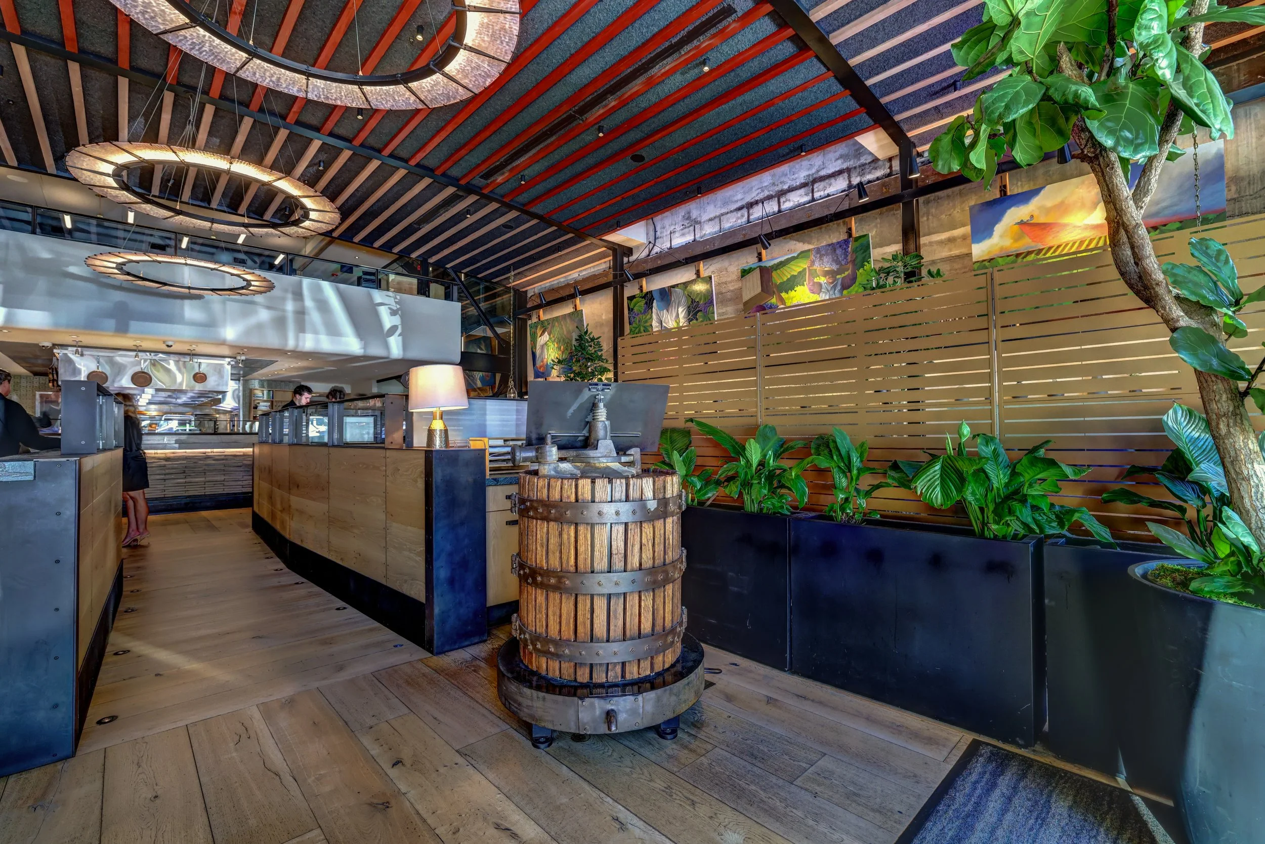Capacity: 45Walk into the soaring space where Honoré's bakery once stood, now transformed with murals telling the Valette story across century-old walls. Your guests explore 88 wines on tap before dinner. Charity auctions come alive here. Wedding receptions flow from cocktails to dancing beneath sculptural lighting. Corporate groups network while Chef Dustin's seasonal cuisine anchors the evening. We've seen it all happen in this room: impressive enough for your most important guests, warm enough to feel like you belong.